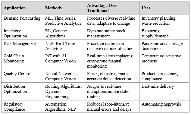 Table 1. Key AI Applications in Pharmaceutical Supply Chain Management